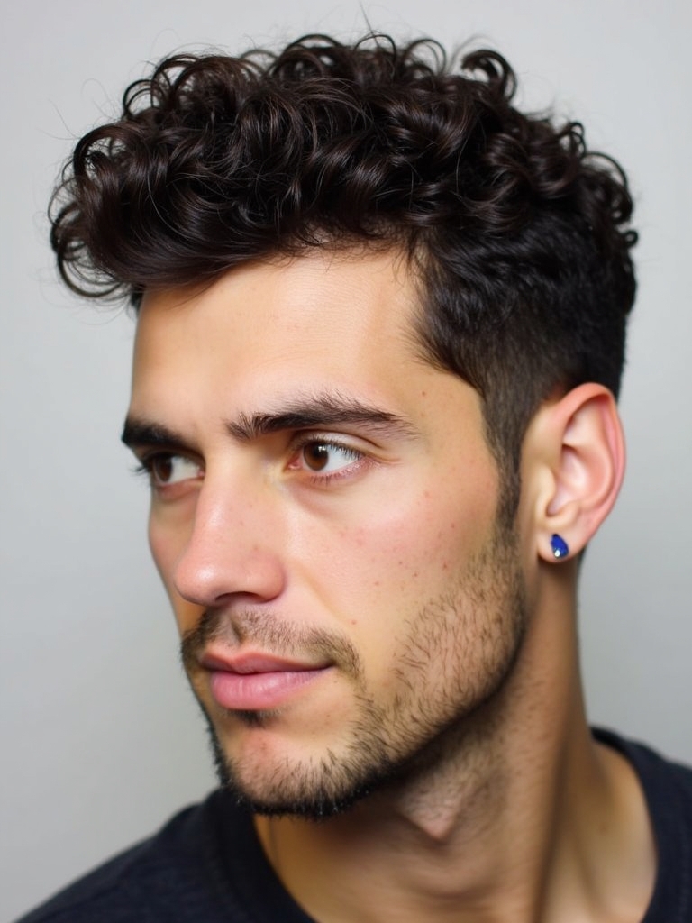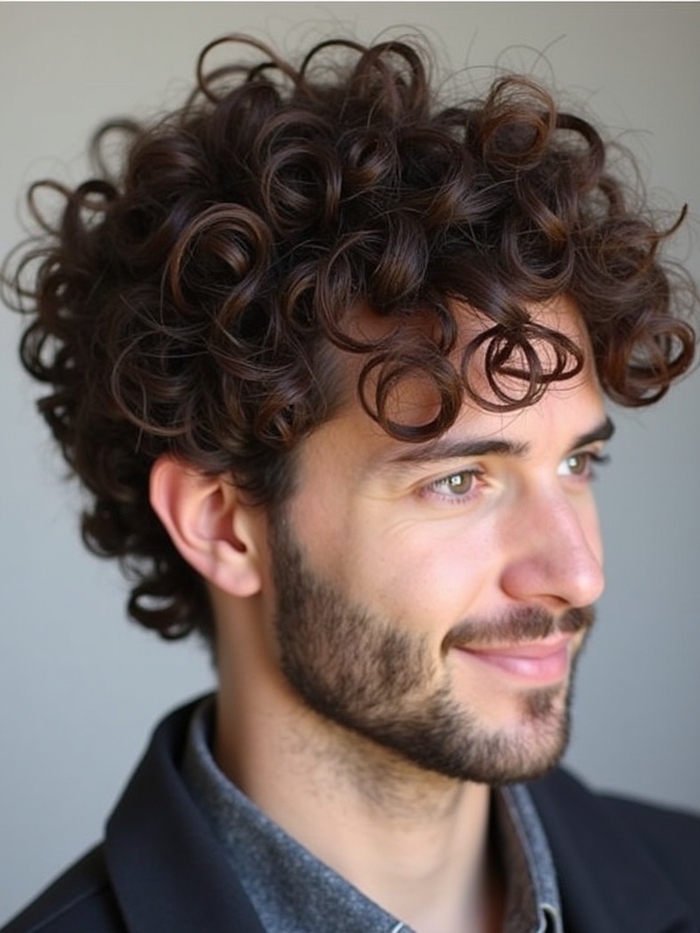 This Curl Men Hairstyles adds a touch of edginess to the classic crop. The Textured Crop with Curls is one of the most Cool Curly Hairstyles Men options. It is a great style for Mens Medium Hair Styles. If you are Growing Out Curly Hair Men, this can be a good way to manage the length while maintaining a stylish appearance. When considering Curly Haircuts For Guys, focus on adding texture to the top while keeping the sides neat and shorter. For Haircuts For Thick Curly Hair Men, this crop can help to manage the bulk while maintaining a stylish look. This is a very trendy Hairstyles For Guys With Curly Hair that offers a balance between style and manageability. The Textured Crop with Curls is suited for Hairstyles For Long Curly Hair Men, as long as the top portion of the hair is long enough to create the desired texture.