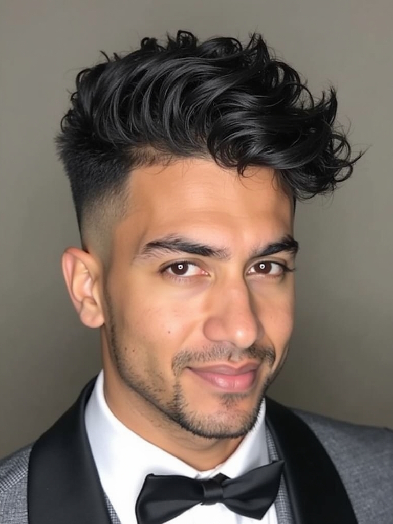 The high top fade with curls is a bold and stylish curly hairstyles for guys, perfect for those who want to make a statement. This look features a high fade on the sides and back, with the curls left long and voluminous on top. This bold choice is a very fashionable Haircut For Guys With Curly Hair right now. To maintain this style, use a strong-hold gel or mousse to keep the curls defined and in place.