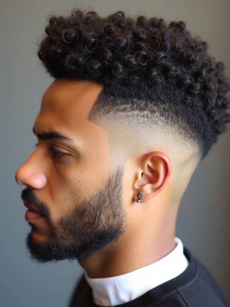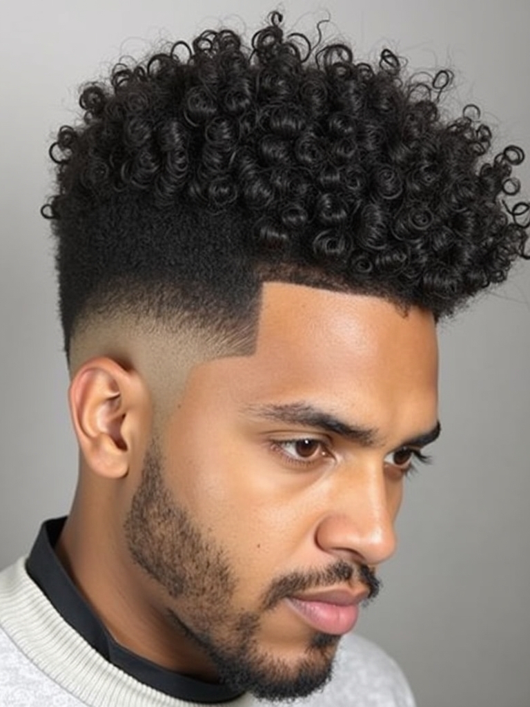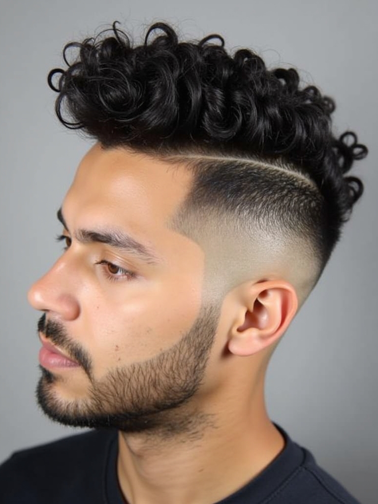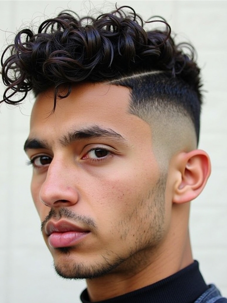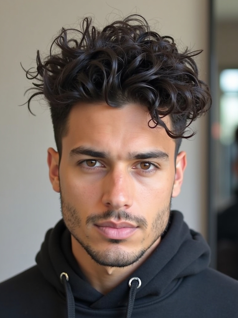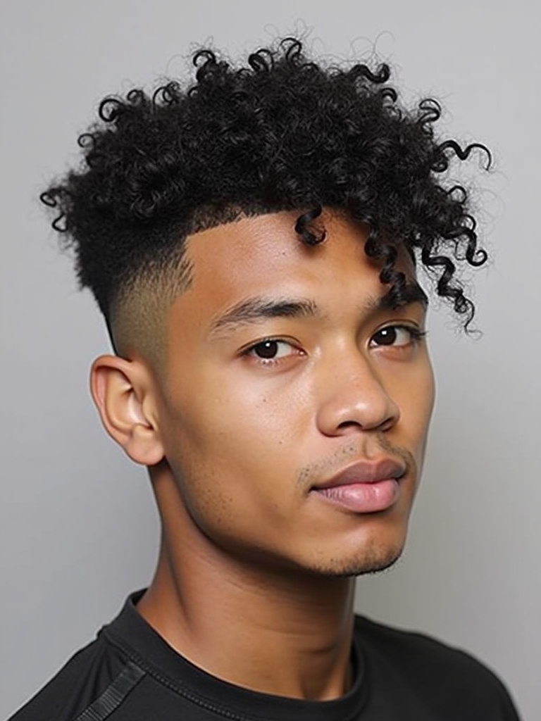This Curl Men Hairstyles is a modern and edgy style for those wanting to showcase their curls. The High Top Fade with Curls is one of the most eye-catching Cool Curly Hairstyles Men, combining a vintage vibe with contemporary style. This hairstyle is perfect for Mens Medium Hair Styles that want to add some volume and height. As you are Growing Out Curly Hair Men, this can be a great way to manage the length while maintaining a stylish appearance. When considering Curly Haircuts For Guys, focus on the contrast between the fade and the volume on top. For Haircuts For Thick Curly Hair Men, this style can help to manage the bulk while still making a statement. This unique style falls into the category of Hairstyles For Guys With Curly Hair, offering a bold and defined look. This hair style looks good for Hairstyles For Long Curly Hair Men, because of the length and volume on top.