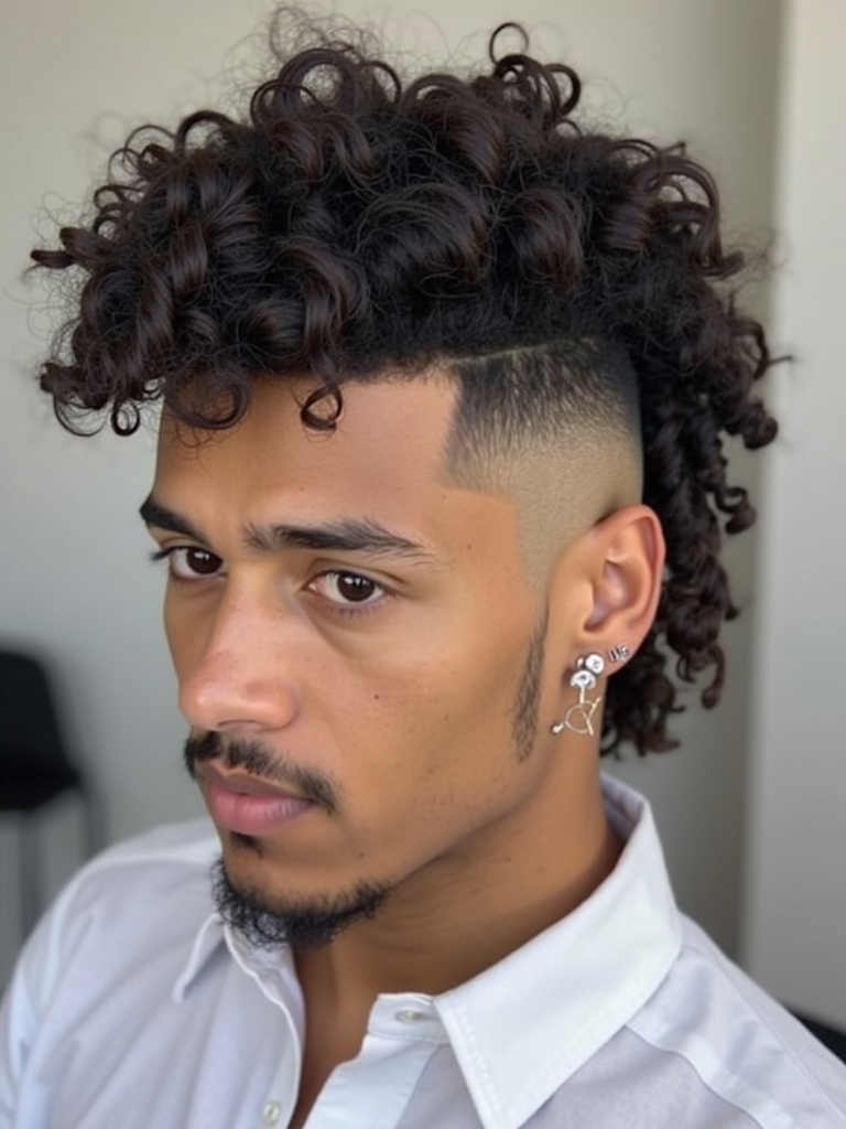 These Curl Men Hairstyles give off a very bold style. The Curly Mohawk is one of the most unique Cool Curly Hairstyles Men available. This looks good with Mens Medium Hair Styles. If you are Growing Out Curly Hair Men, the curly mohawk can be a fun and stylish way to manage the length while adding a touch of edginess. When you are planning Curly Haircuts For Guys, focus on creating a defined strip of curls in the center and keeping the sides short. The mohawk can look good for Haircuts For Thick Curly Hair Men, because this helps to manage the volume and create a bold and edgy appearance. The Mohawk is the best choice for Hairstyles For Guys With Curly Hair that will grab attention. This is a style that will make your Hairstyles For Long Curly Hair Men look daring.