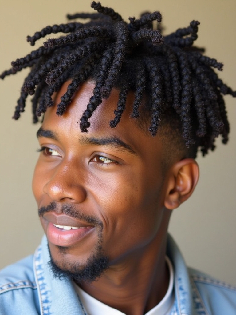 This Curl Men Hairstyles is a stylish and protective option for your hair. Twists with Curls is one of the most unique Cool Curly Hairstyles Men that works with all lengths. This look also works very good with Mens Medium Hair Styles. If you are Growing Out Curly Hair Men, twists can be a great way to manage the length while adding a protective element. When you are planning Curly Haircuts For Guys, make sure to keep the curls long enough to be twisted comfortably. The style is good for Haircuts For Thick Curly Hair Men, because this will protect your hair from damaging. This hairstyle is very unique for Hairstyles For Guys With Curly Hair. Twists with Curls is a very cool look for Hairstyles For Long Curly Hair Men, because this provides an protective and stylish element.