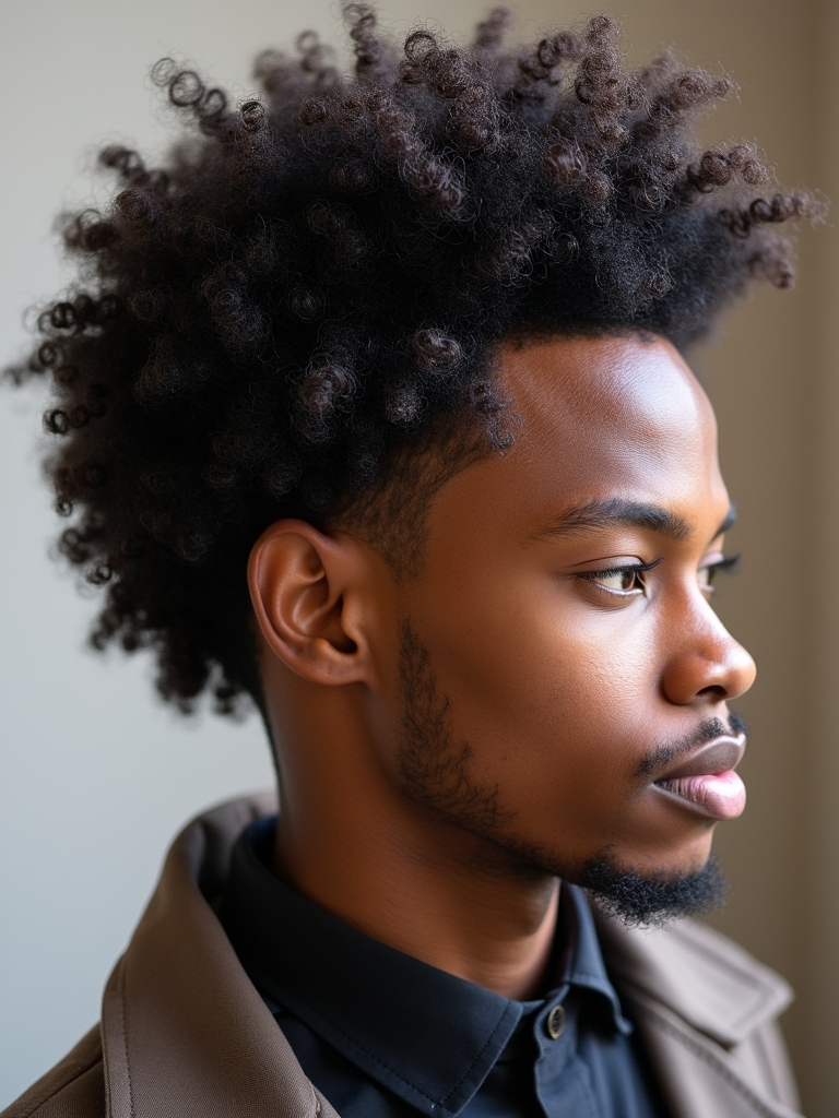 This Curl Men Hairstyles showcases the definition of the coils. The Finger Coils style is one of the best Cool Curly Hairstyles Men for showing off your natural look. This style is good for Mens Medium Hair Styles because of its textured style. As you are Growing Out Curly Hair Men, finger coils can be a great way to define and manage the length. When you are planning Curly Haircuts For Guys, focus on creating a uniform and defined curl pattern. This style works well for Haircuts For Thick Curly Hair Men as it helps to define and control the volume. This is a classic for Hairstyles For Guys With Curly Hair. This unique hairstyle helps to showcase the texture of Hairstyles For Long Curly Hair Men, creating a defined and polished appearance.