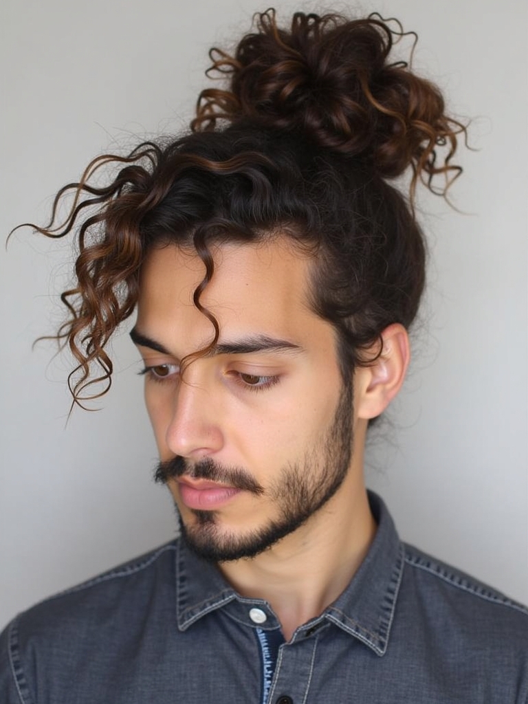 7. Man Bun with Curls for Guys