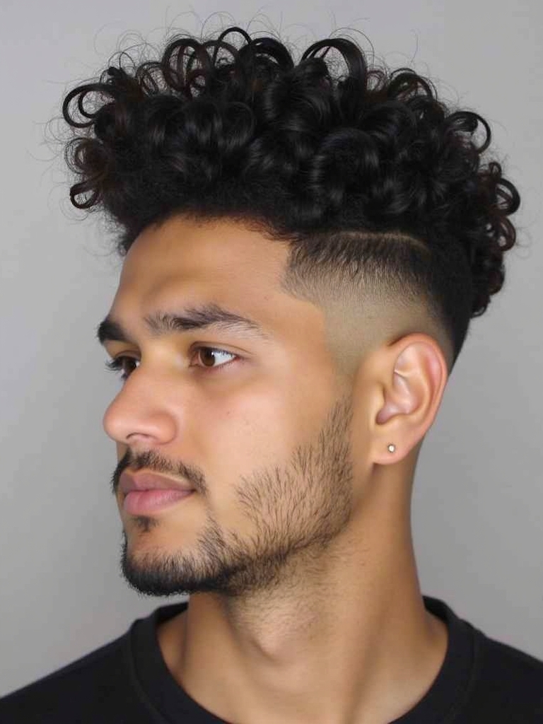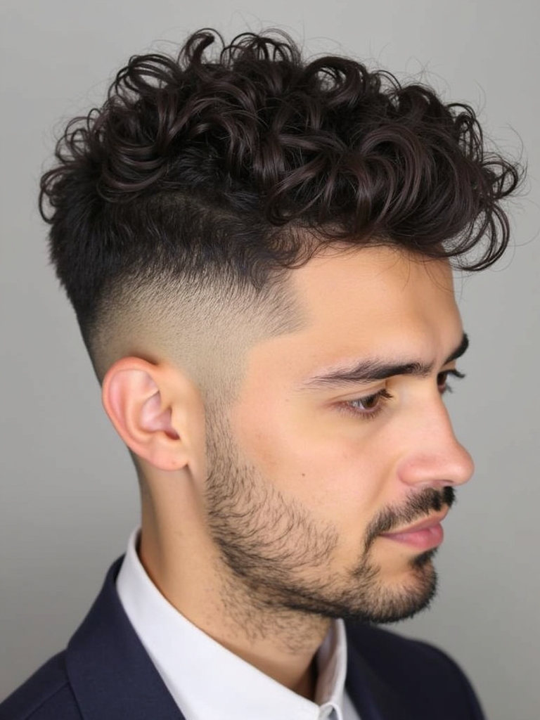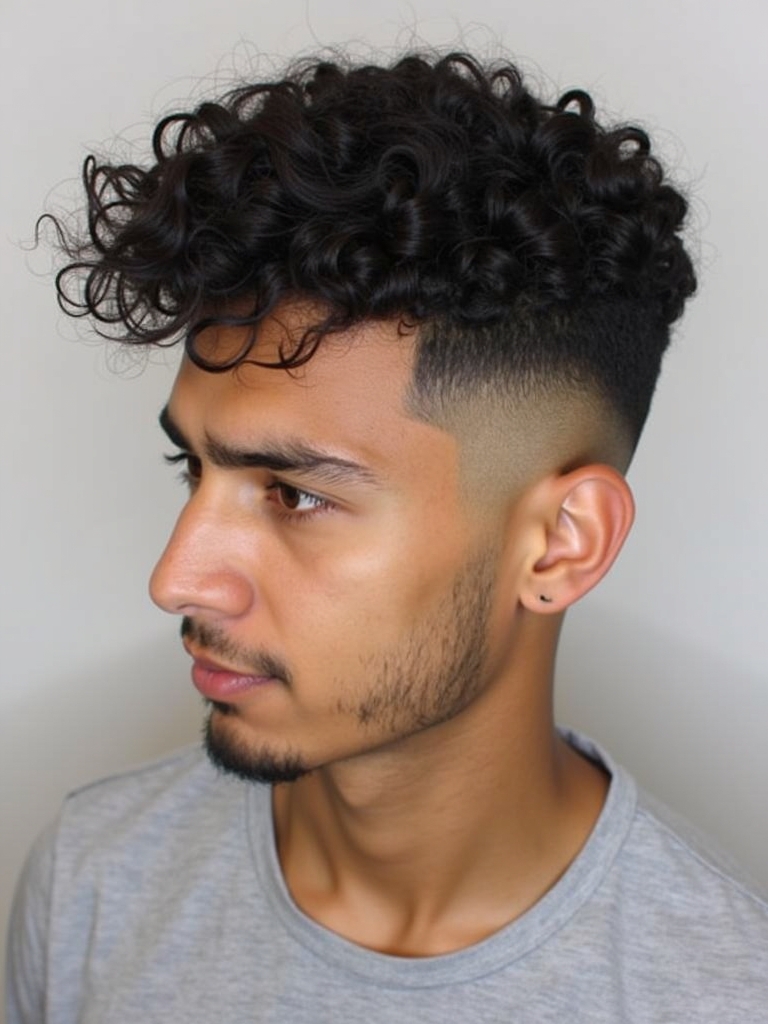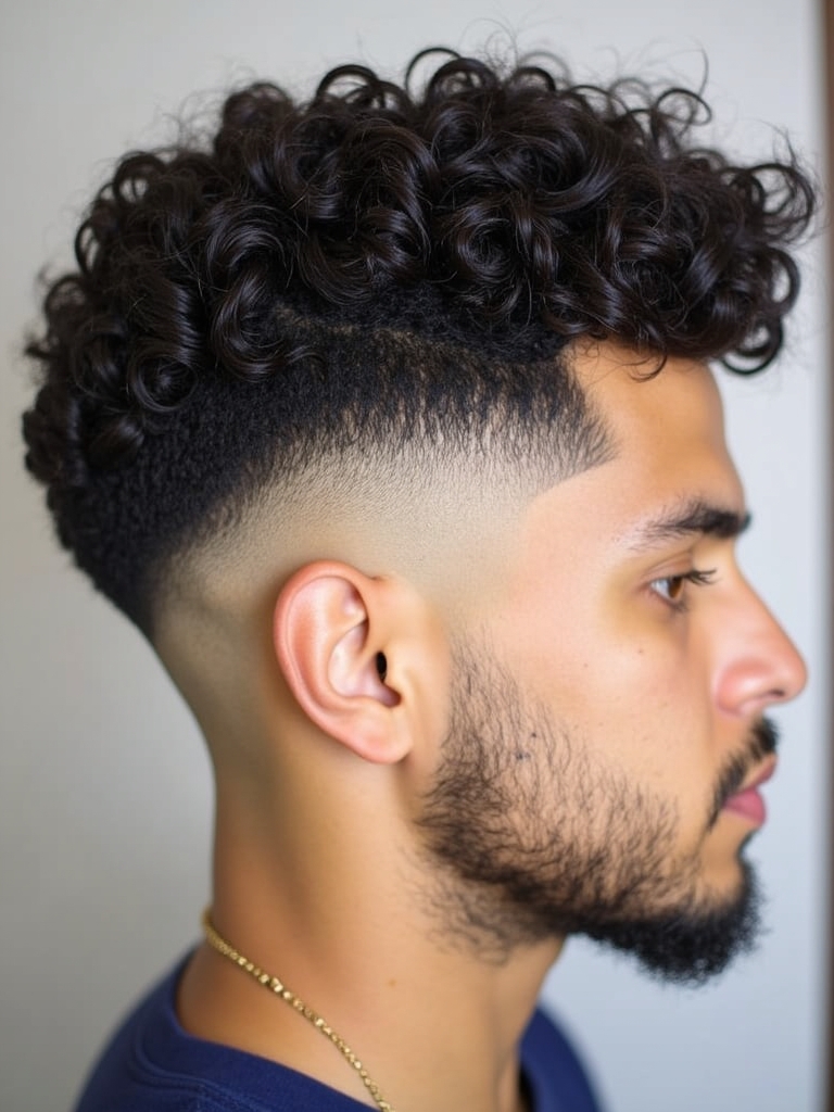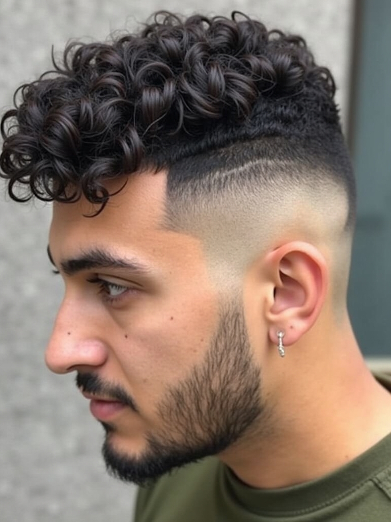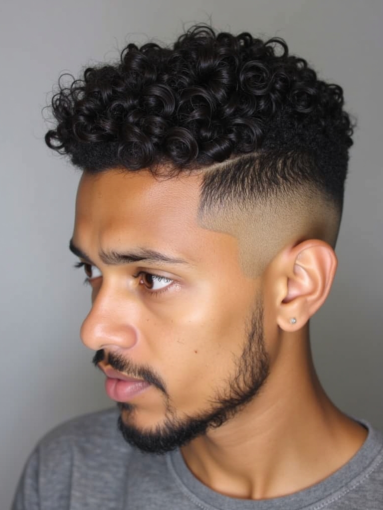 25. Temple Fade with Curls for Guys