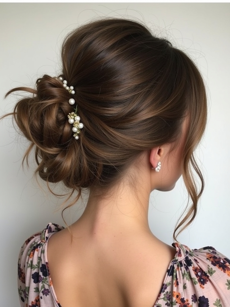 An elegant low side bun adds a touch of asymmetry and grace to your appearance. It creates a soft, romantic vibe for your Fancy Date Night Outfit, differentiating it from a standard centered bun. This style complements a Fancy Dinner Outfit with an interesting neckline or back detail. As you select Outfits For Dinner, remember that a side bun photographs beautifully from the front. It is a lovely option for Dinner Date Outfits, suggesting a gentle and approachable demeanor. For a Fancy Dinner, it looks curated without being overly stiff. During a Date Dinner, the side placement allows the hair to be seen while conversing, rather than being hidden behind your head. Your Dinner Outfits can be accessorized with statement earrings on the opposite side for balance. Among Date Outfits, this is a timeless choice that never goes out of style. For Night Outfits, you can make it sleek for a formal vibe or pull out strands for a wind-swept, dreamy effect.